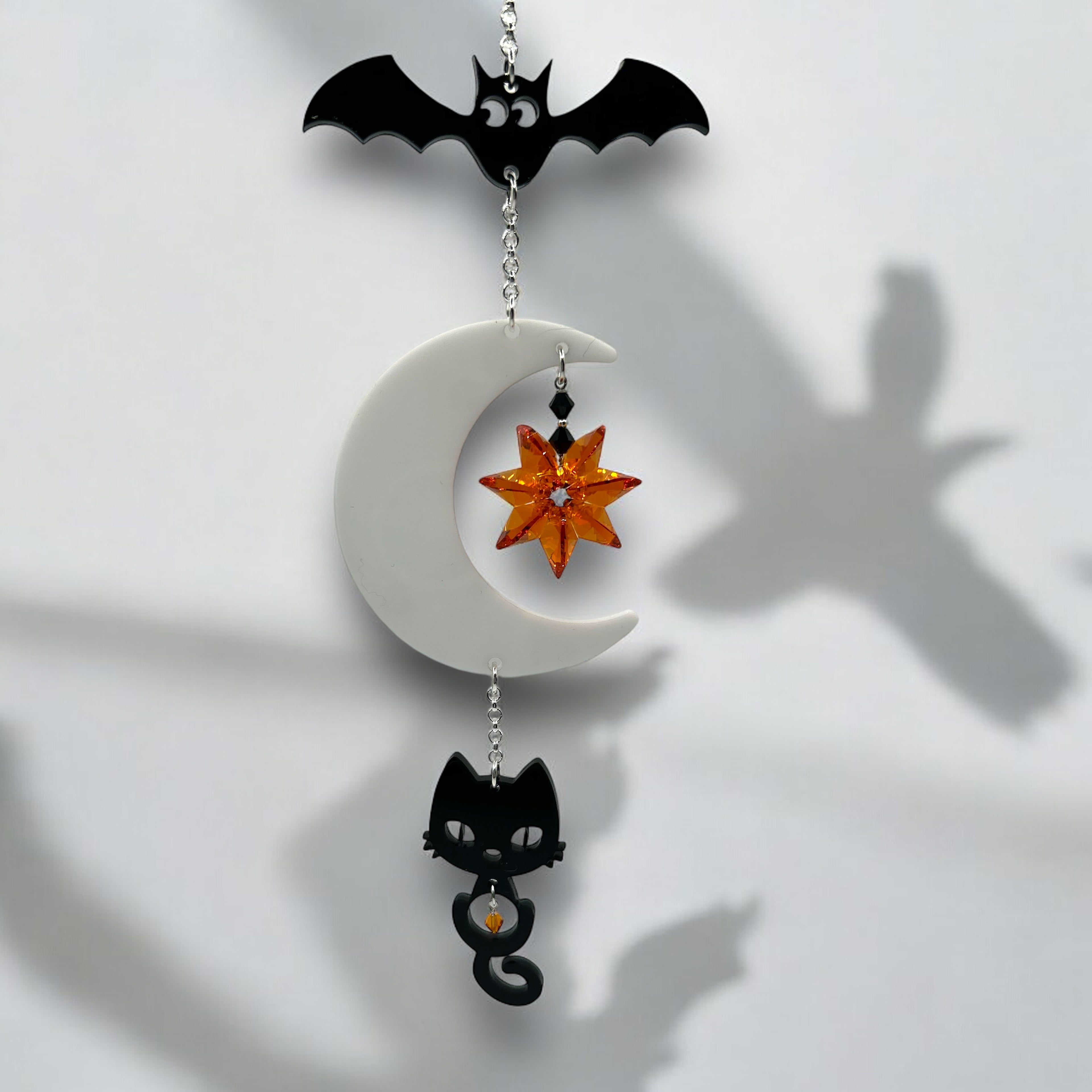 Moonlit Whiskers and Wings Halloween Suncatcher (Ready to Hang)